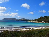 Esperance war, wie schon im letzten Bericht erwaehnt, etwas schraeg, und dieser Eindruck aenderte sich nicht. Irgendwie hat im Westen zu wenig genetischer Austausch stattgefunden, hat man das Gefuehl. Aber die Landschaft war herrlich, leider einfach zu kuehl zum Baden. So waren wir halt nicht im, sondern nur am Wasser und auf einem der Granithuegel im Cape Le Grand Nationalpark mit toller Aussicht.