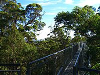 Wir stachen wieder nach Sueden an die Kueste und fuhren dieser entlang zum Valley of the Giants. Da hats tatsaechlich Giganten - Baeume. Einer der wenigen Flecken, wo die Weissen nicht alles zu Holzschnitzel verarbeitet haben. Das ist ein gefundenes Fressen fuer die Tourismusbranche und folglich werden da Touris in rauen Mengen hingelockt. Allerdings, muss ich zugestehen, fuer eine wirklich tolle Sache: Tree Top Walk. Dieser fuehrt leicht steigend bis in die Baumwipfel und anschliessend wieder runter. Eine geniale Perspektive!