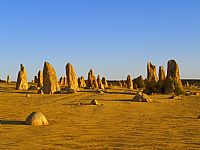 Unsere erste Etappe war - wie koennte es auch anders sein - die Pinnacle Desert. Von diesem Flecken haben wir schon diverse Bilder gesehen und wussten, wenn die Zeit reicht, werden wir da hingehen. Und wie es sich gelohnt hat! Bei Sonnenuntergang fuhren wir hin und konnten die Steinsaeulen in herrlichem Licht bestaunen.